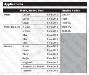 Használható: Mercedes-Benz 1.3 L M 242.914 és Renault 1.3 L H5H benzin motorokhoz
