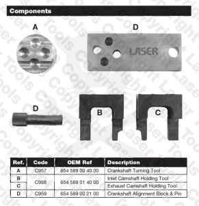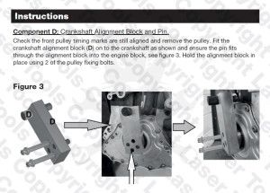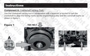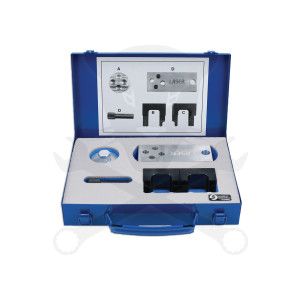 A motor eltávolítása után ez a célszerszám készlet lehetővé teszi a felhasználó számára, hogy pozícionálja a vezérműtengelyeket és a főtengelyt a lánccsere érdekében.