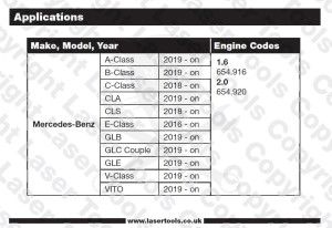 - Motor típusok alapján: - 1.6 L (Motorkód: 654.916) - 2.0 L (Motorkód: 654.920)