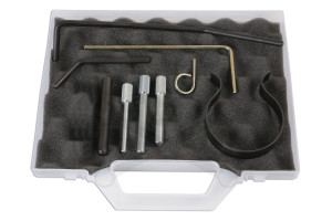 Vezérműszíj-cseréhez szükséges célszerszám készlet.