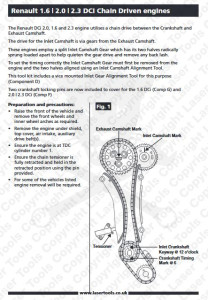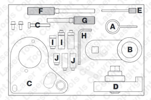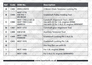 Vezérlésrögzítő, vezérléspozícionáló szerszámkészlet a Renault 1.6, 2.0, 2.3 DCI lánchajtásos dízelmotorokhoz.
