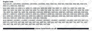 - 1.6-os: R9M, LWU/R9M, LWX/R9M, LWY/R9M, LWZ/R9M