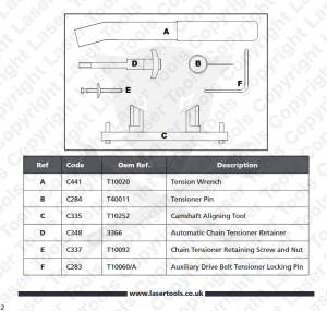 - Vezérműtengely beállító szerszám (C): OEM T10252