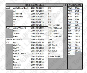 Pontosan a 2.0 liter benzines TFSI és FSI motorokkal szerelt gépjárművekhez